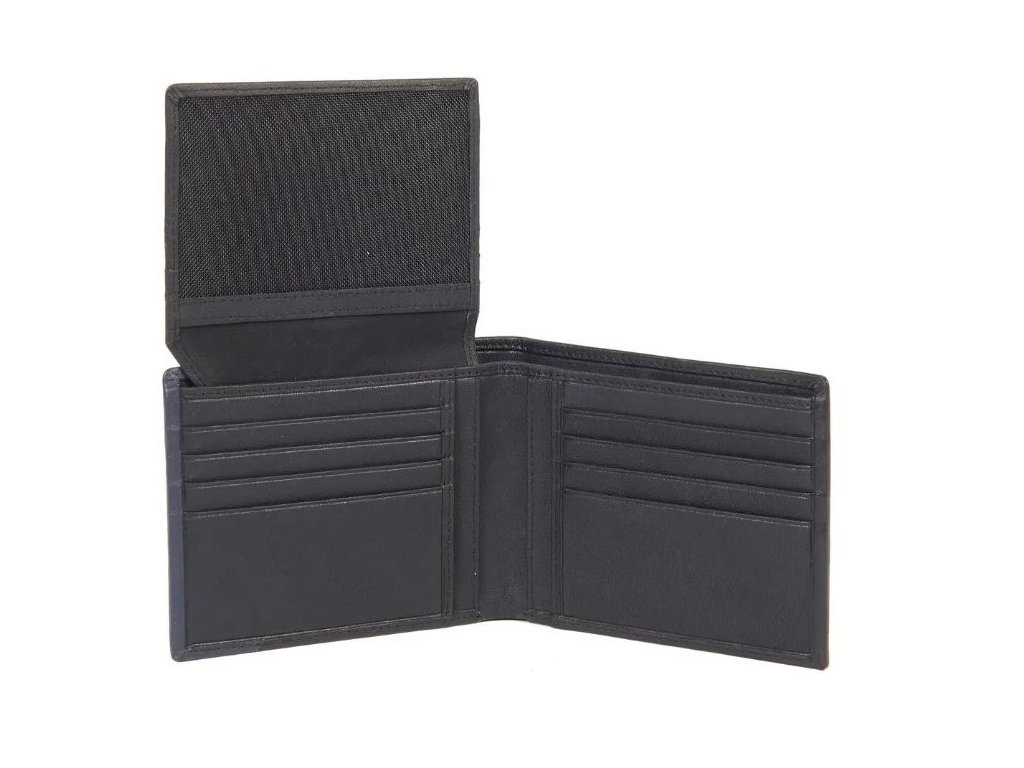 Elegantní černá pánská peněženka z kůže a logem v modrém pruhu je ideálním doplňkem pro každého muže. Nabízí dostatek prostoru pro bankovky, karty i mince, a zároveň se vejde pohodlně do kapsy. Jednoduchý design bez zbytečností působí moderně a profesionálně. Spolehlivá volba pro každodenní použití.