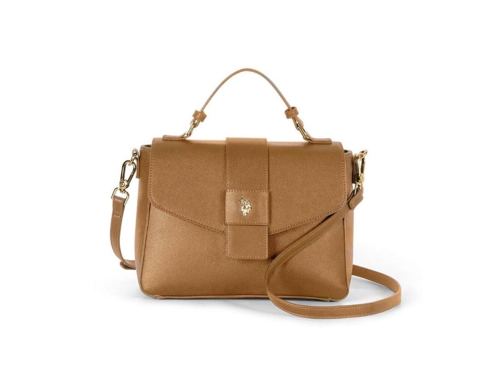 Dámská kabelka USPA Jones Flap Handle Bag z polyuretanu v rozměrech 27 x 11 x 20 cm a ve světle hnědé barvě je ladem skladem za 877 Kč.